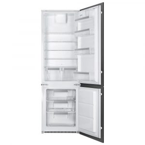 Với ngăn đông nằm ở phía dưới, bạn sẽ nhận được ba ngăn kéo với ngăn làm đông nhanh trong mẫu tủ lạnh Smeg này. Các tính năng nâng cao bao gồm cảnh báo cửa, miếng đệm kháng khuẩn và cảnh báo nhiệt độ cho cả tủ lạnh và tủ đông. Tủ lạnh có ba ngăn có thể điều chỉnh, hai ngăn kéo, một khay đựng trứng và một giá đựng chai lọ.