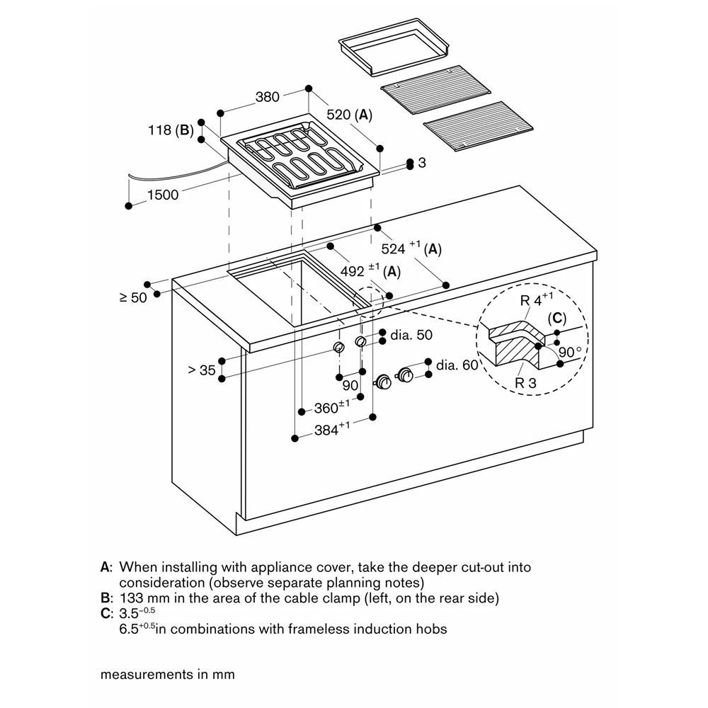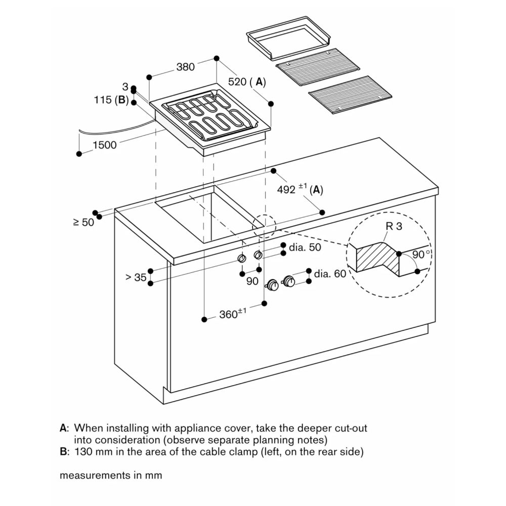 Thông số kỹ thuật và tổng quan của bếp nướng điện Gaggenau VR414115 Vario Series 400 3000 W