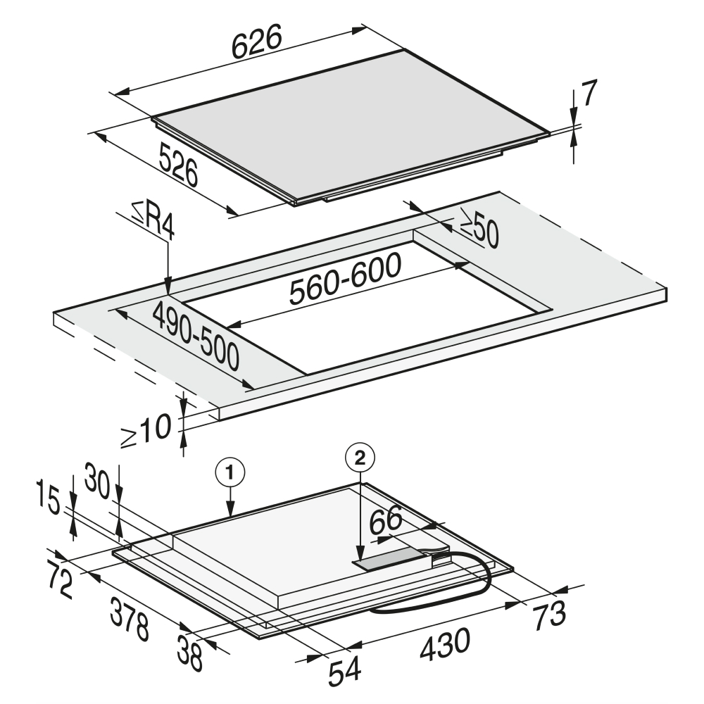 Loại bếp – Kiểu lắp đặt: Bếp từ 4 vùng nấu – Lắp âm, bếp cần lắp CB
