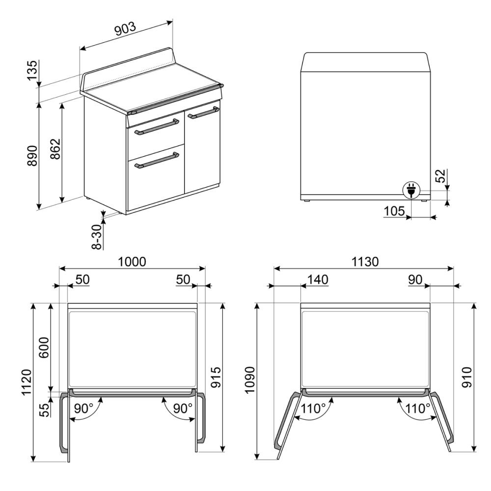 | Kích thước bếp | Cao 102,5 cm x Ngang 90,3 cm x Sâu 65,5 cm |