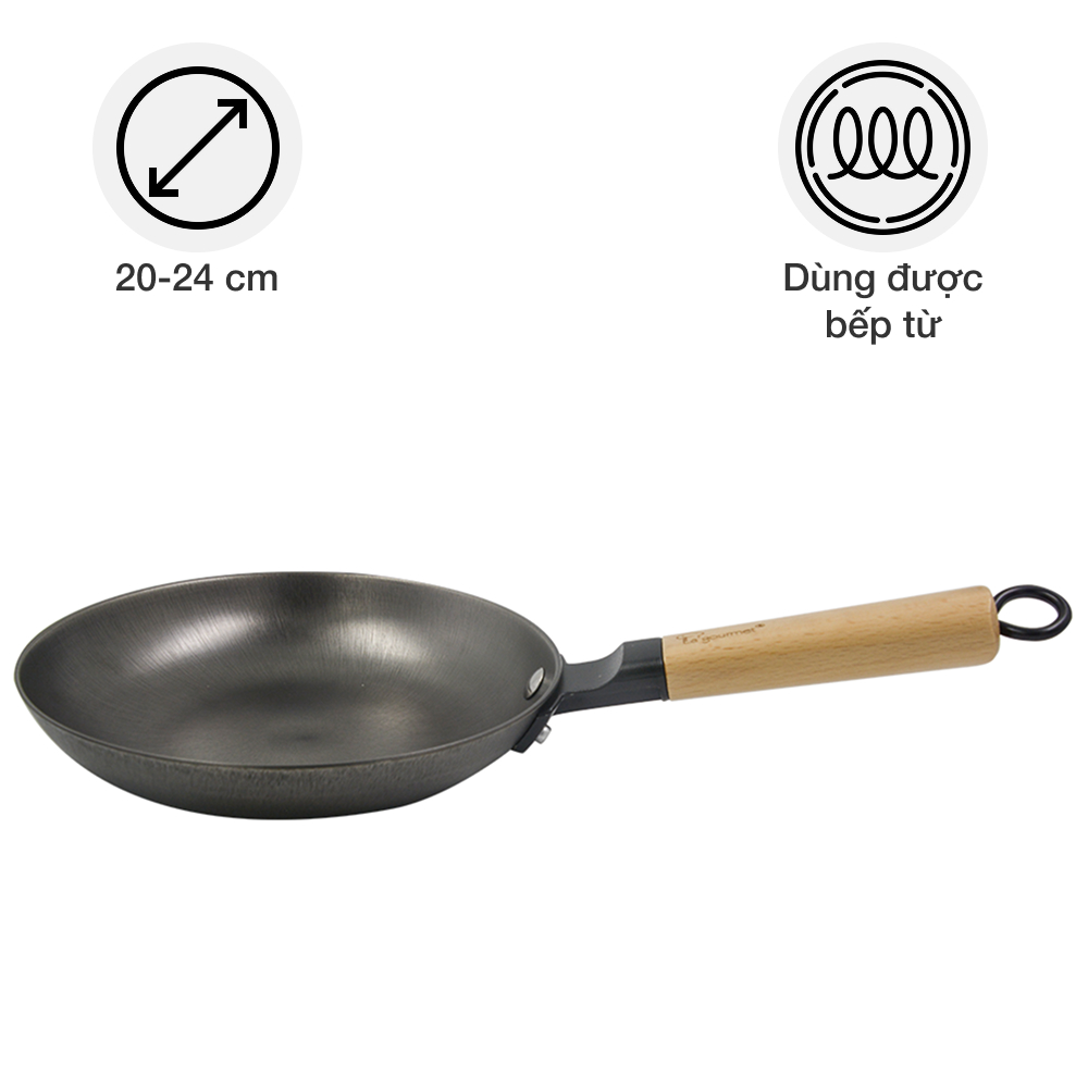 | Tiện ích | – Lớp chống dính tự nhiên an toàn (qua quá trình tôi dầu) – Truyền nhiệt cực tốt – Tạo hương vị món ăn chuẩn Wok Hei – Chống gỉ với công nghệ Nitrigan – Cán gỗ có thể tháo rời – Móc treo tiện lợi |