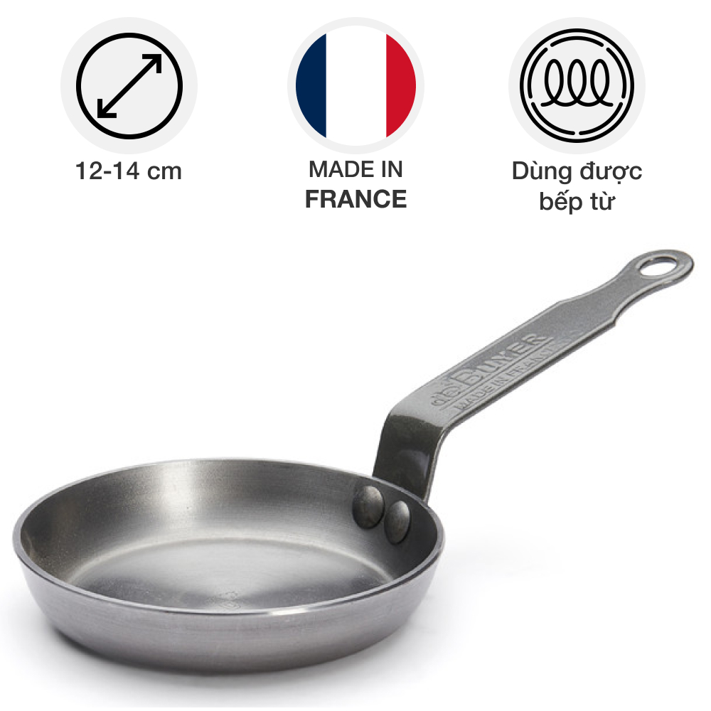 Thông số kỹ thuật và tổng quan thiết kế chảo thép carbon De Buyer 5612 blinis Mineral B Element