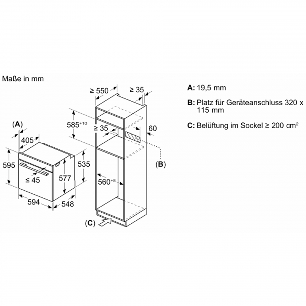 Kích thước lắp đặt lò nướng kiêm hấp & vi sóng Bosch HNG978QB1 Series 8 Âm Tủ