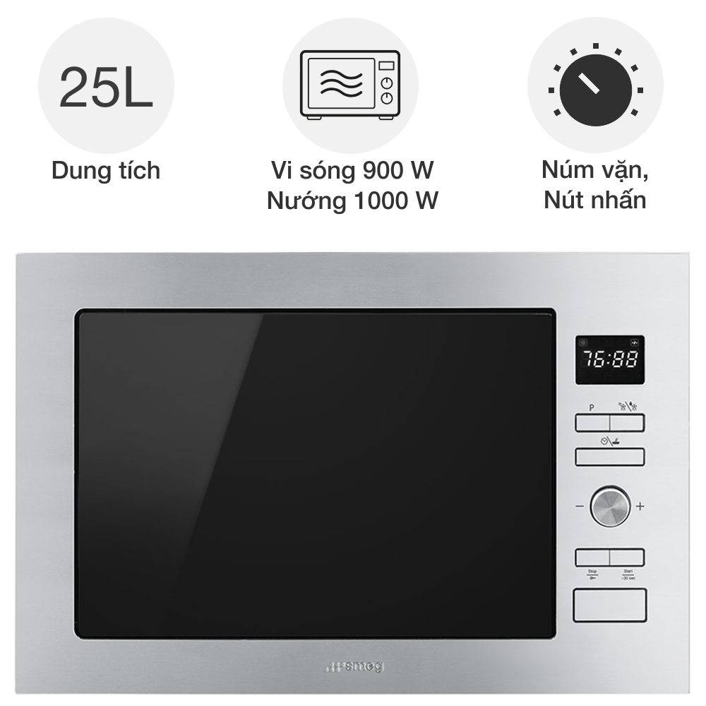 Thông số kỹ thuật và tổng quan lò vi sóng kèm nướng SMEG FMI425X Selezione âm tủ