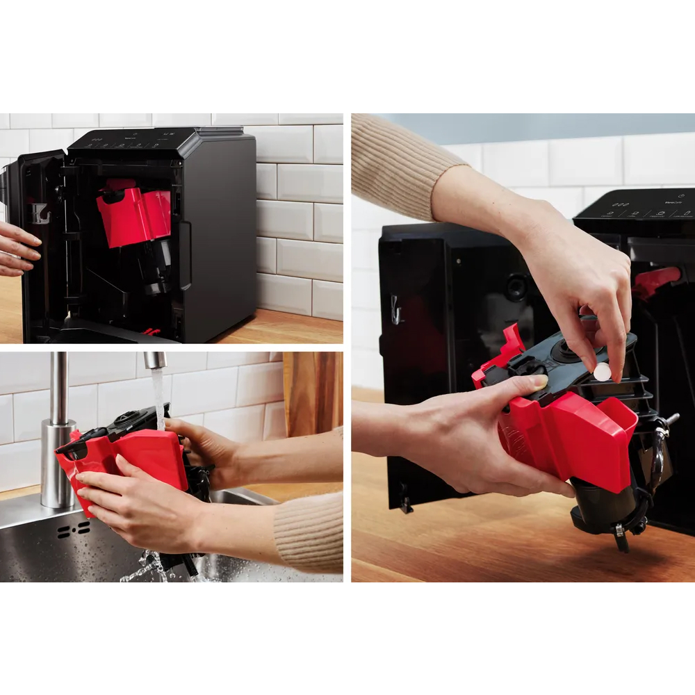 | Tiện ích | – Vòi rót cà phê có thể điều chỉnh độ cao trong khoảng 8,5 – 13 cm – Cối xay ceramDrive bằng gốm chống mài mòn – Vòi đánh bọt sữa, bình chứa nước, bộ phận pha chế, khay nhỏ giọt và hộp đựng bã cà phê có thể tháo rời – Điều khiển tiện lợi, pha chế nhanh chóng chỉ với 1 nút bấm oneTouch – Tự động tắt máy khi không sử dụng – Chức năng tự vệ sinh SelfCleaning |