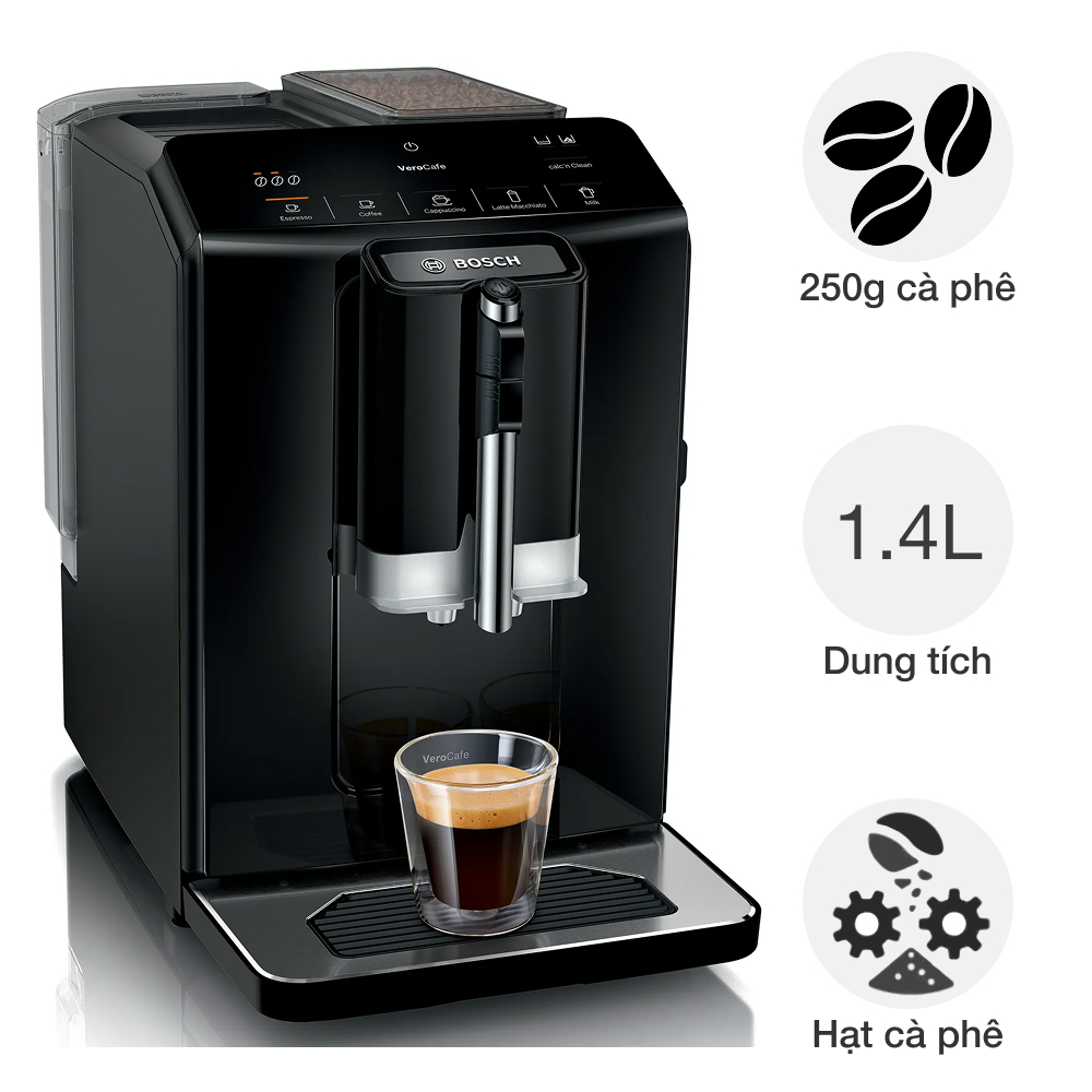 Thông số kỹ thuật và tổng quan máy pha cafe tự động Bosch TIE20119 VeroCafe Piano Series 2