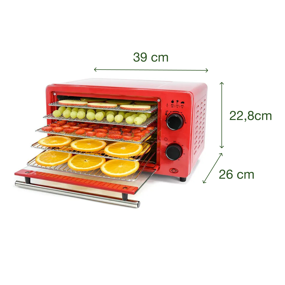 Tiện ích | – Hẹn giờ tối đa 12 giờ – Trang bị khay hứng vụn thực phẩm – Luồng khí được phân bổ theo chiều ngang giúp thực phẩm được sấy khô đồng đều hơn |