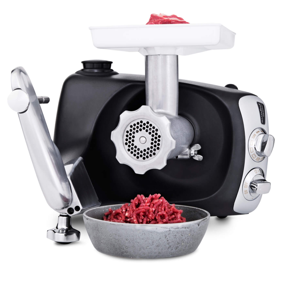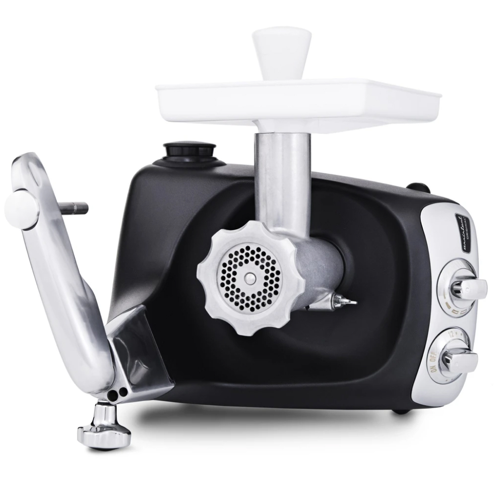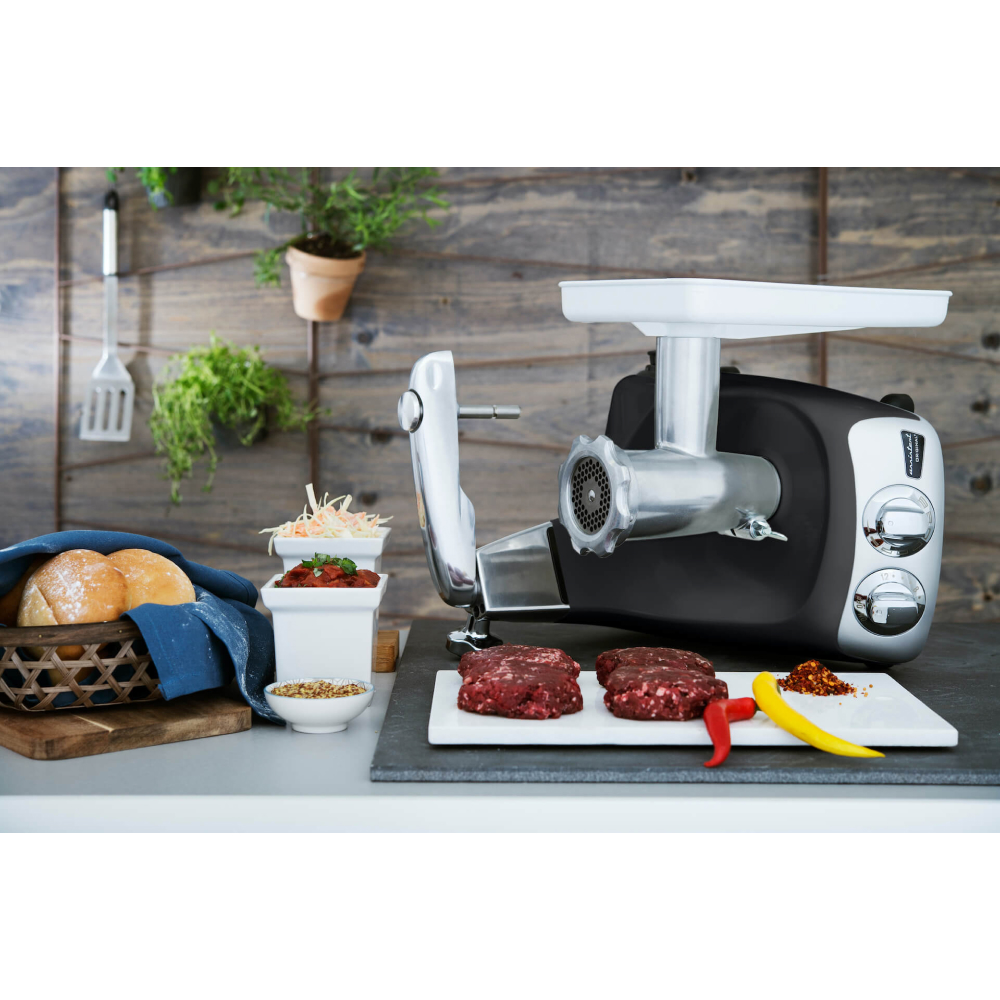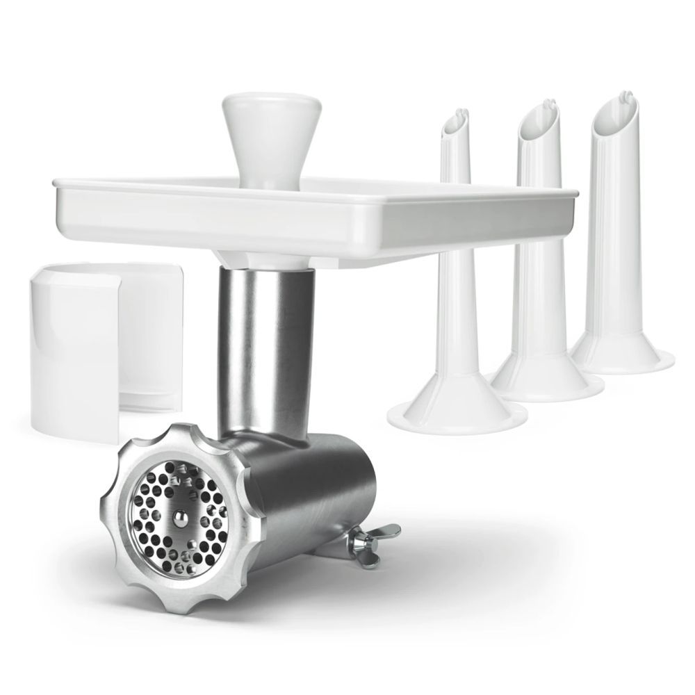 | Bao gồm | – Trục động cơ nghiền – Dao 4 lưỡi – Mặt sàng lỗ 4,5 mm – Nắp cố định mặt sàng – 3 đầu nhồi xúc xích (10/20/25 mm) – Khay nạp nguyên liệu – Phễu nhồi – Tấm chắn nước |