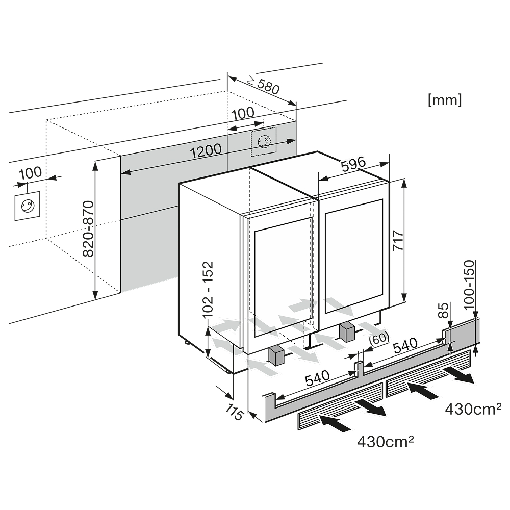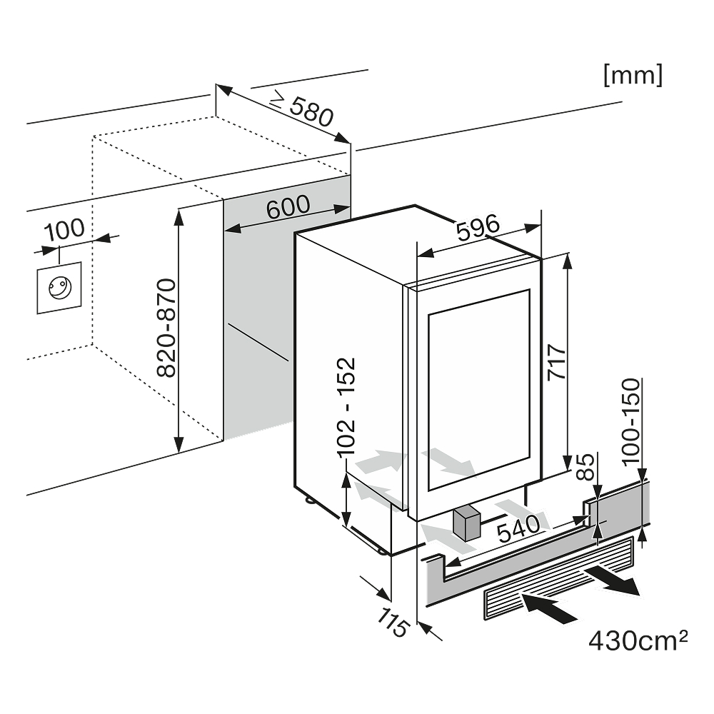 Tổng dung tích tủ | 94 lít – 34 chai (chai Bordeaux tiêu chuẩn 0,75 lít) |