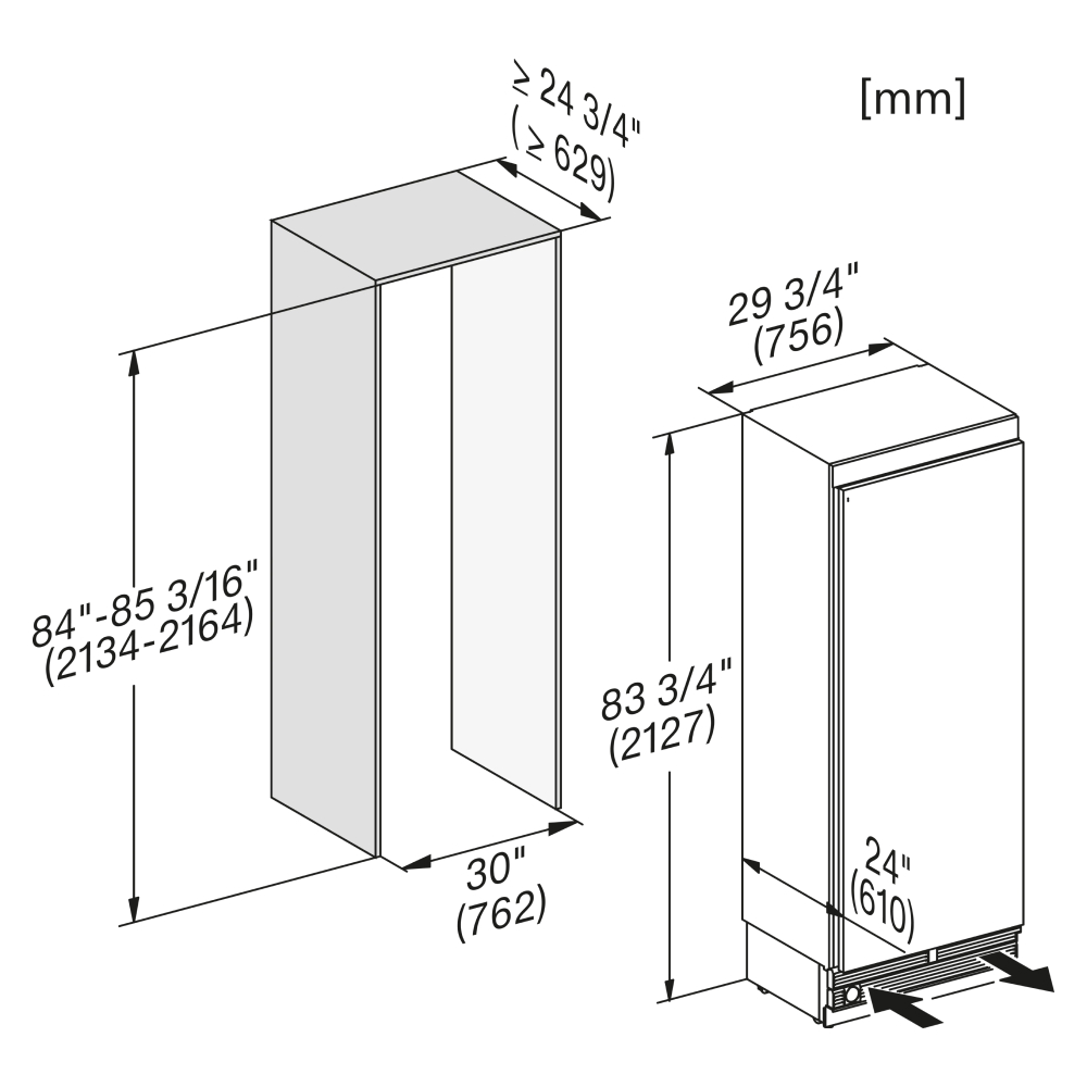 Loại tủ | Tủ đông đứng – Lắp âm, có thể ghép đôi side-by-side |