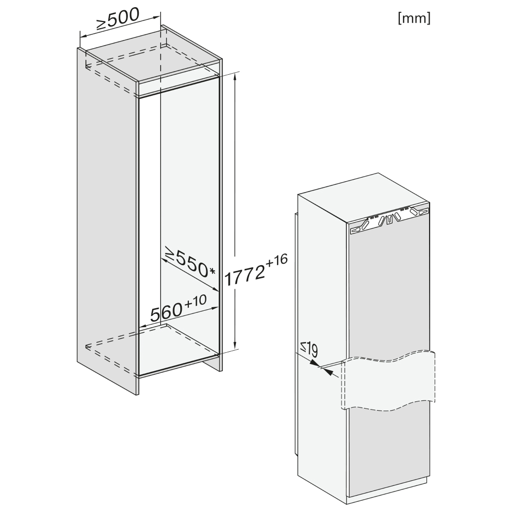 Thông số kỹ thuật và tổng quan tủ lạnh âm tủ Miele 294 lít Cooler K 7747 C 125 Gala Ed