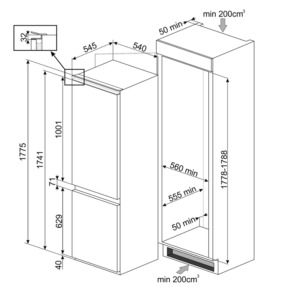 | Kiểu tủ | Tủ lạnh ngăn đá dưới – Lắp âm |